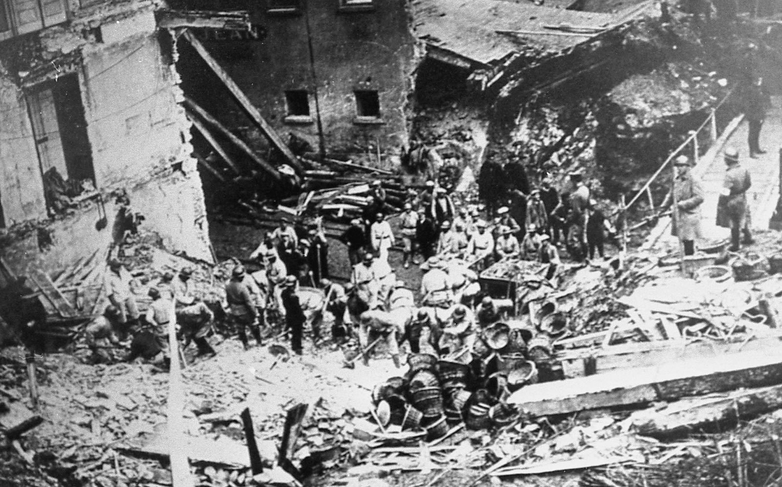 Les secours évacuant les victimes après la catastrophe de Fourvière.