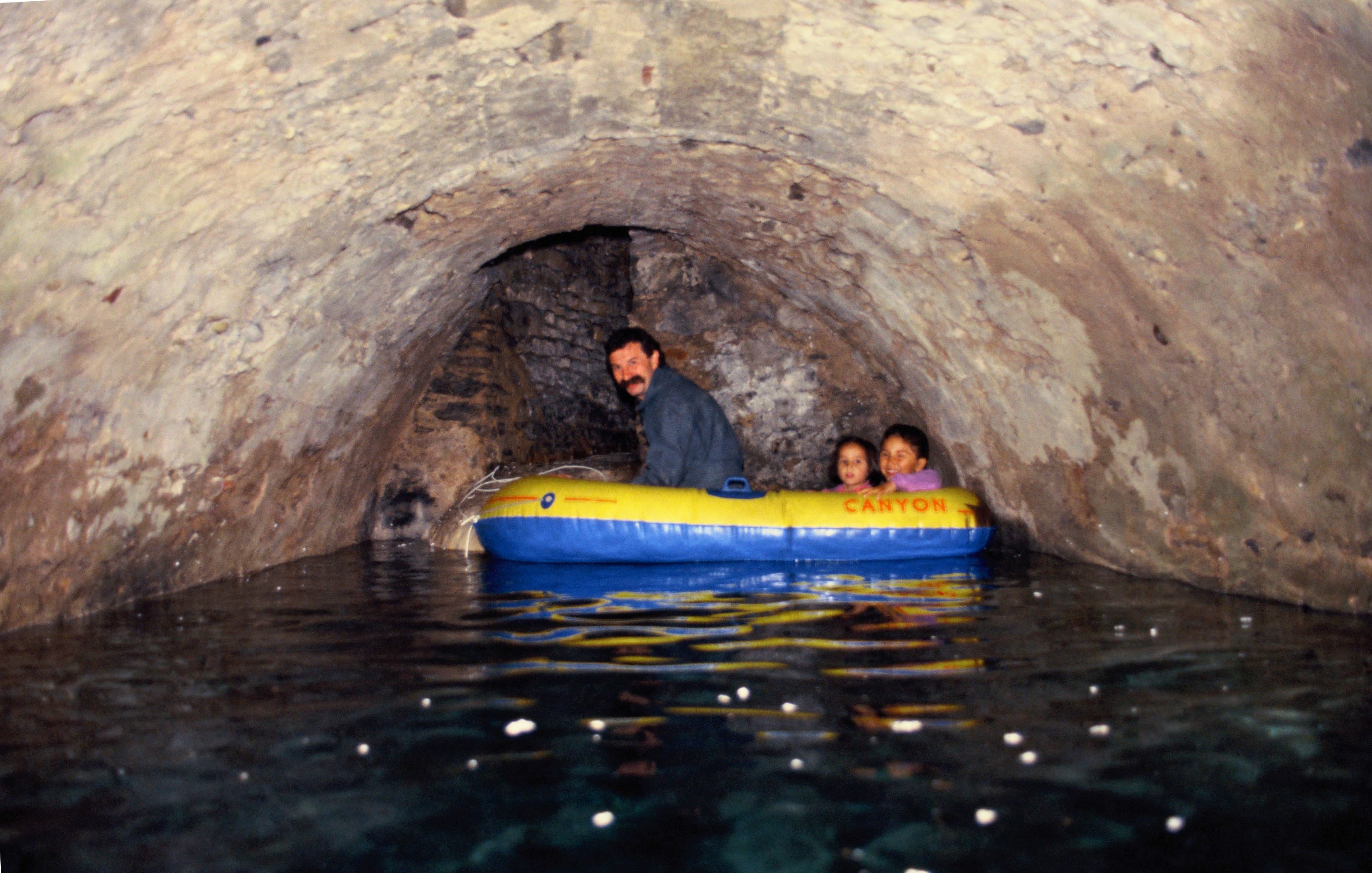 Les historiens lyonnais s’accordent en effet sur l’existence de cavités remplies d’eau, plus ou moins vastes. La colline est en effet truffée de galeries et souterrains. Ces tunnels, notre guide à la célèbre moustache les a parcourus à plusieurs reprises au cours de sa carrière. Il est lui-même descendu, il y a une vingtaine d’années, dans un souterrain rempli d’eau avec ses enfants, sous la piste de ski de la Sarra. « On a pu se déplacer avec une petite embarcation de plage à travers les galeries, mais c’est très étroit ». Sous la montée du Gourguillon, l’espace est même suffisamment large, l’eau d’une clarté si limpide, qu’on peinerait à croire qu’un tel endroit existe sans les clichés qui sont là pour en témoigner.