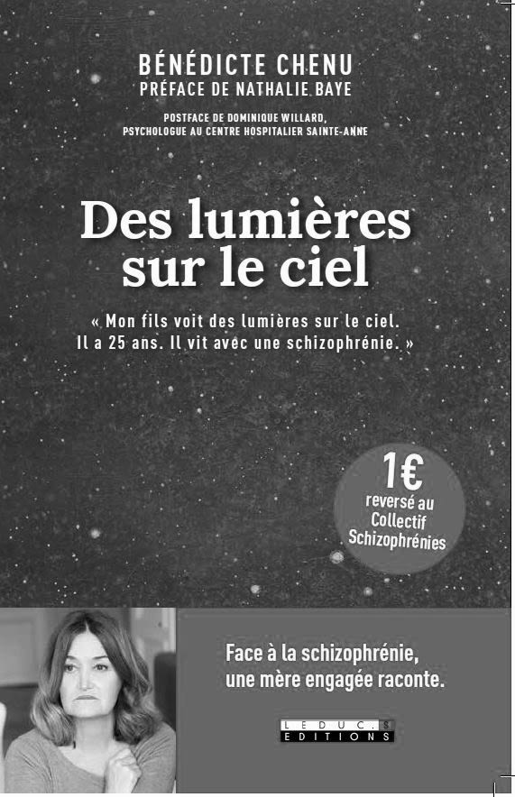Puis Bénédicte s’est engagée au sens plus large encore, en intégrant Collectif Schizophrénie, regroupement de sept associations qui travaillent à faire accepter la maladie et en améliorer la prise en charge. « Notre volonté est d’informer le grand public, avec un discours simple, non stigmatisant, parler de la maladie pour ce qu’elle est et non ce qu’elle représente, favoriser les témoignages… » Bénédicte Chenu regrette encore de voir des personnes intervenir visage flouté, dans les reportages évoquant cette pathologie. Elle a écrit un livre, qui encourage cette mise en lumière de la réalité de la schizophrénie.