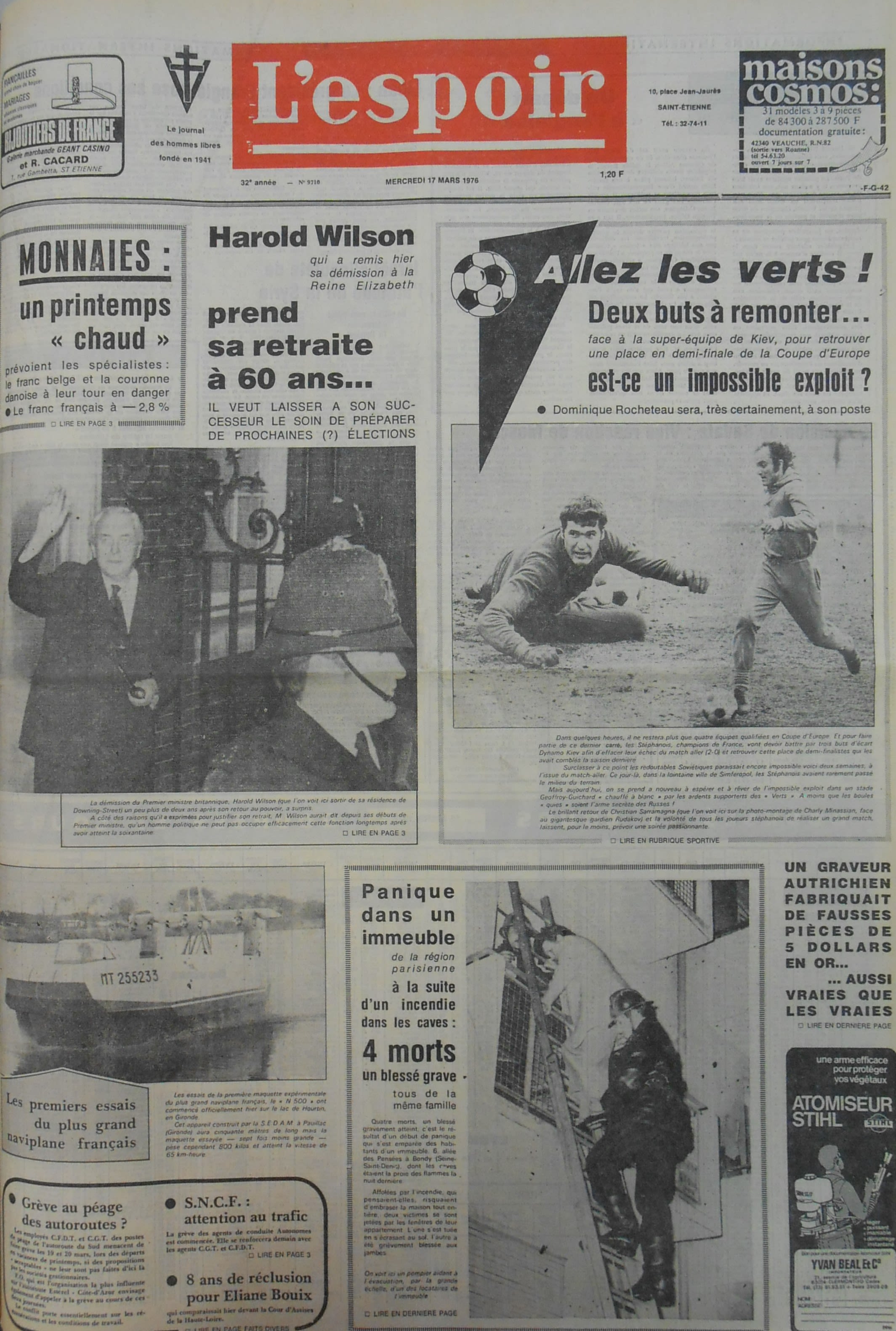 La Tribune-Le Progrès annonce les problèmes de l’ASSE le 2 avril 1982