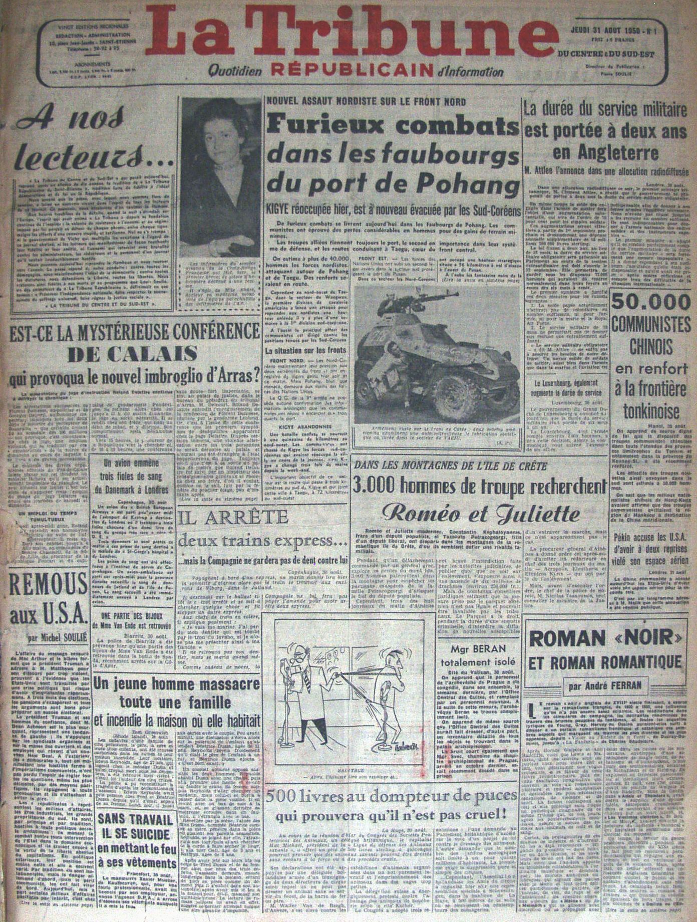 Editorial de La Tribune expliquant sa reparution le 31 août 1950