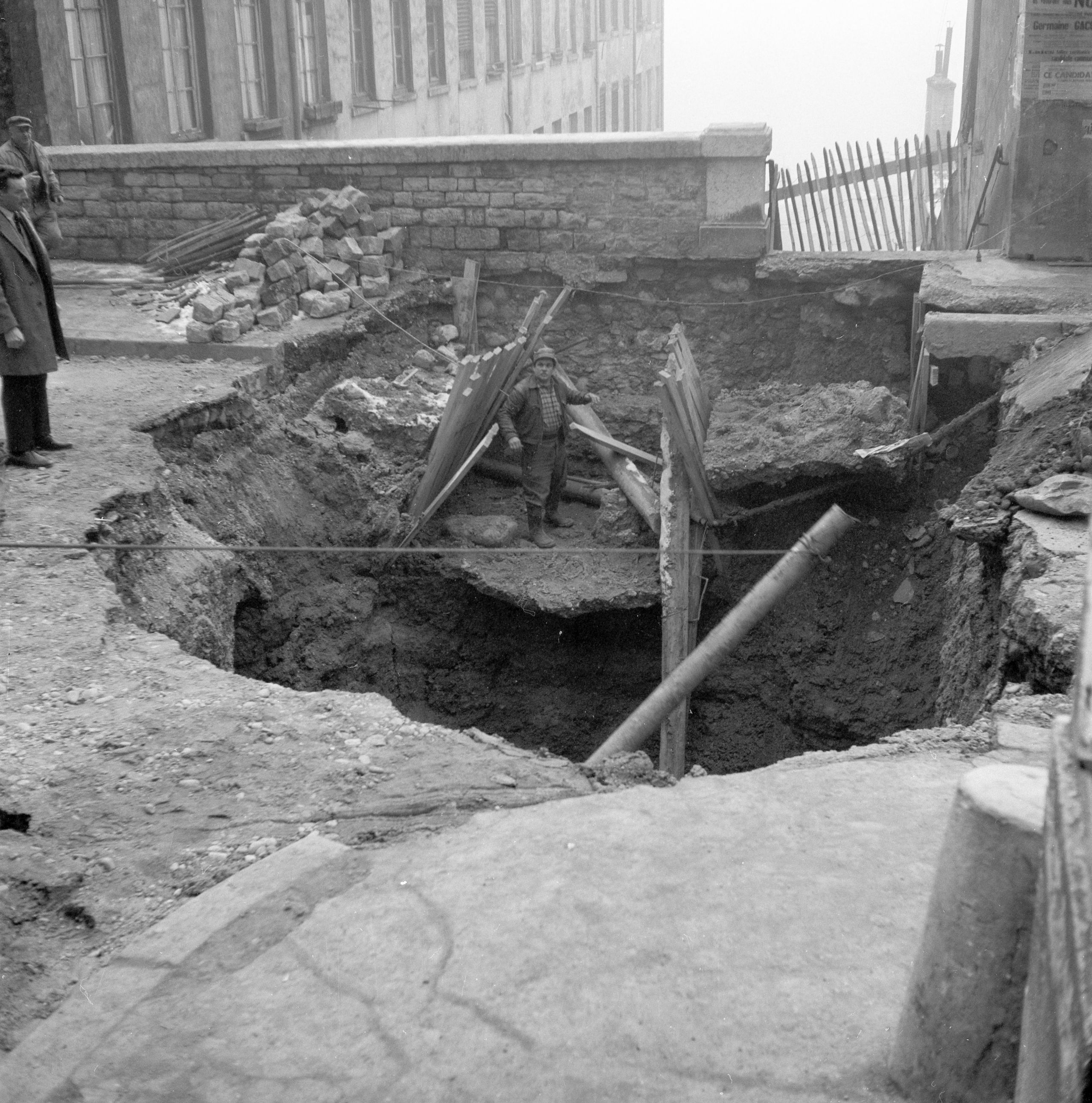 Le temps des questions viendra bientôt (quand a été construit ce site et par qui, quelle était sa vocation ?) mais d'abord il faut sécuriser l'ouvrage. Le service de voirie multiplie ainsi les interventions dans le secteur des rues Adamoli et Magneval au début des années 60, comme en témoignent les rapports conservés au sein des archives municipales. (Document en photo : archives municipales de Lyon/cote 423WP21)