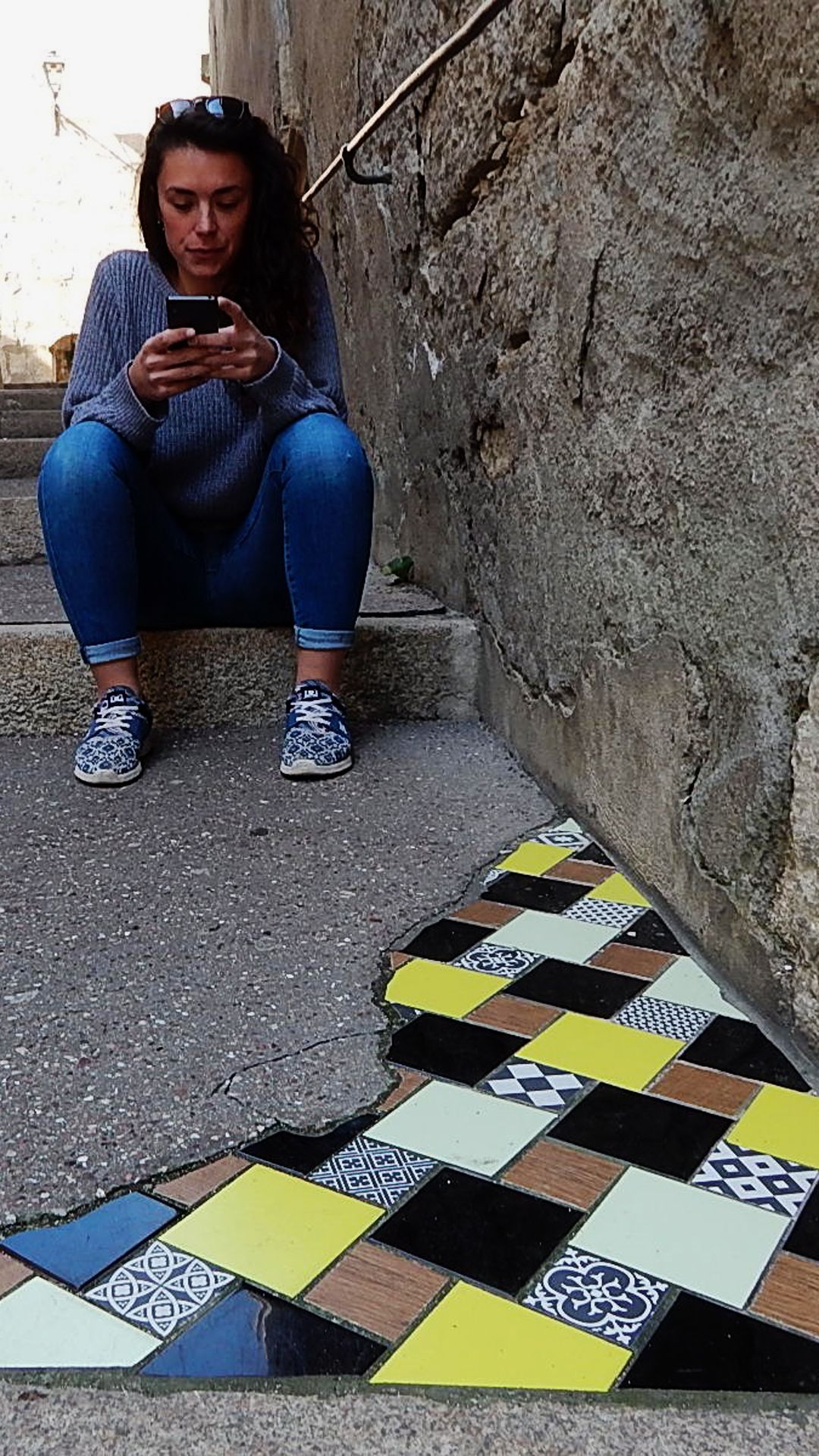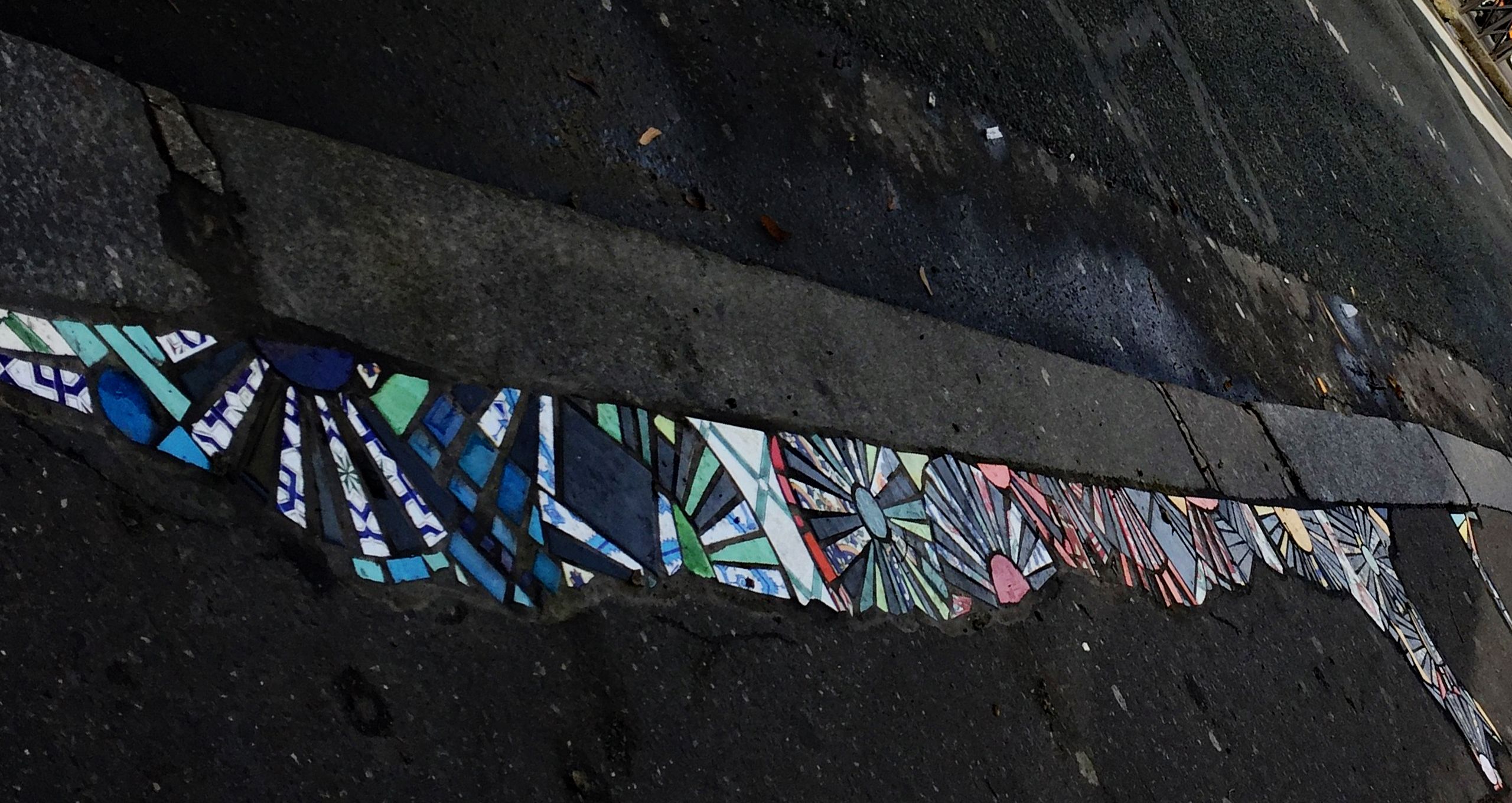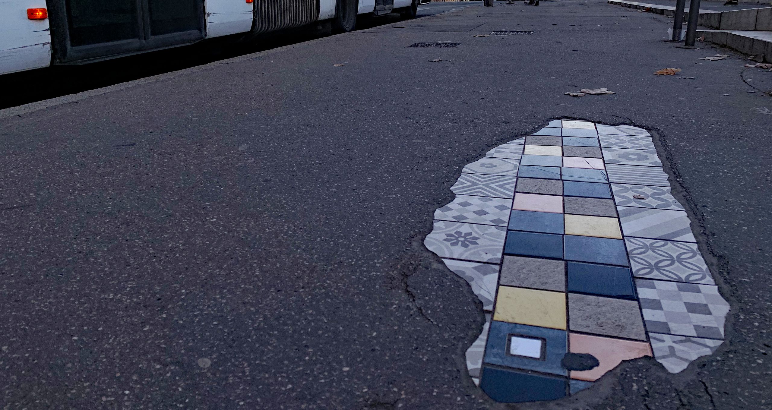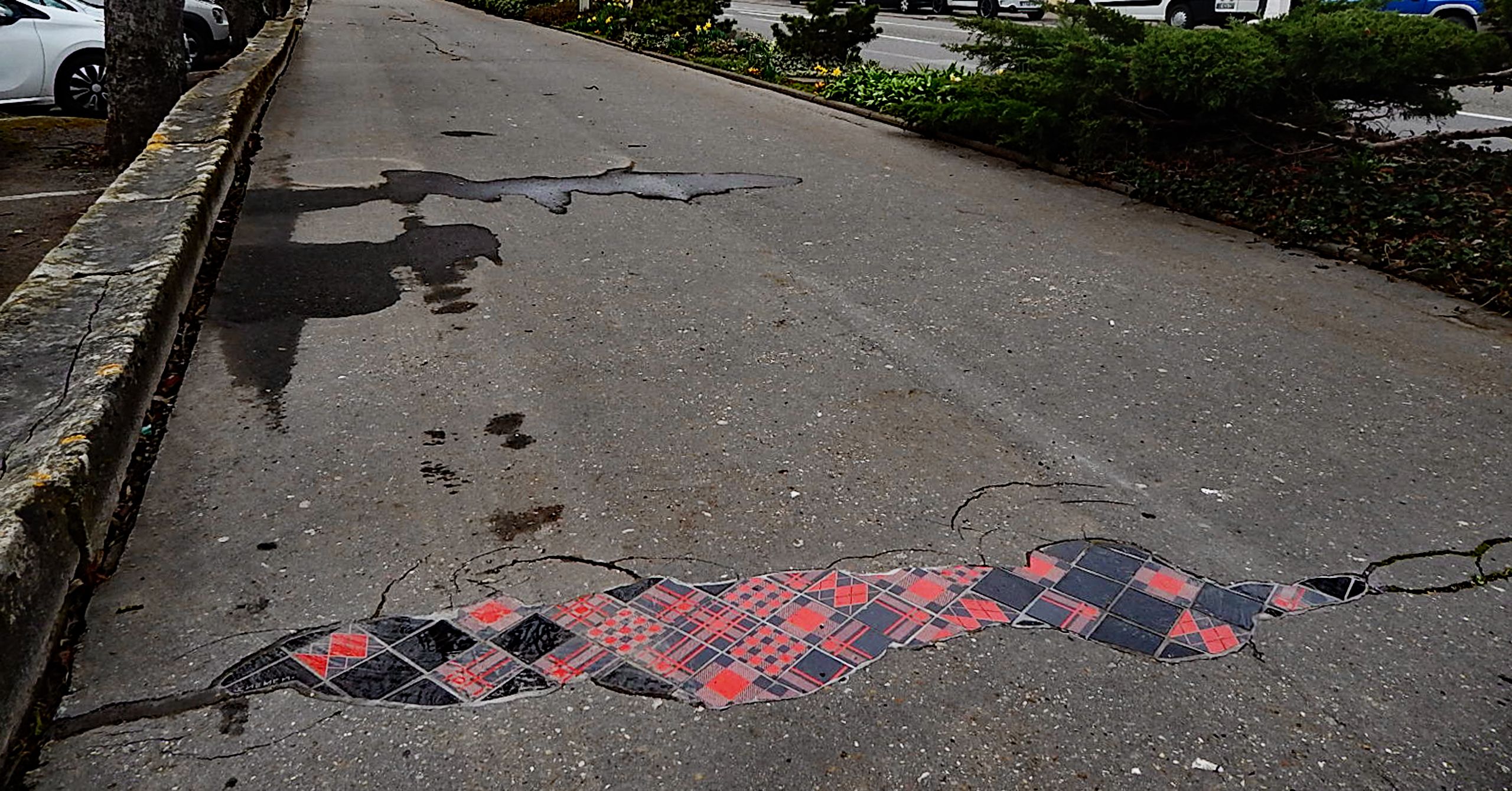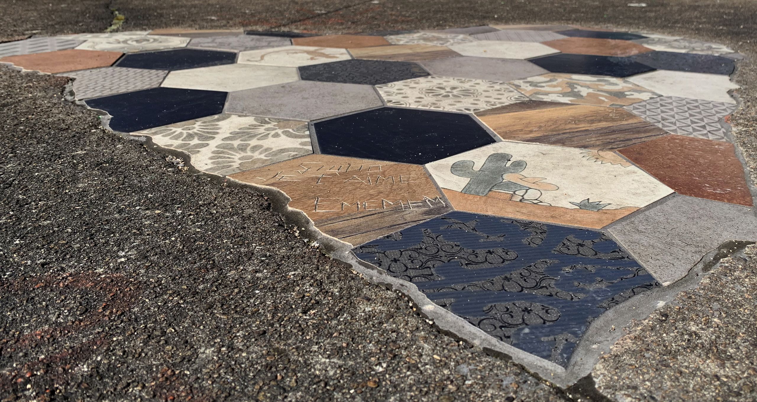 Jusqu'à présent bien accrochée aux murs, la céramique s’allonge désormais également sur nos trottoirs. Soigner les plaies du bitume avec des pansements en mosaïque qui colorent la ville et l’embellissent, c’est devenu l’obsession du street artiste lyonnais Ememem. Le créateur de ces flaques de carrelage a même, il y a trois ans, donné un nom à ce travail : le flacking.
