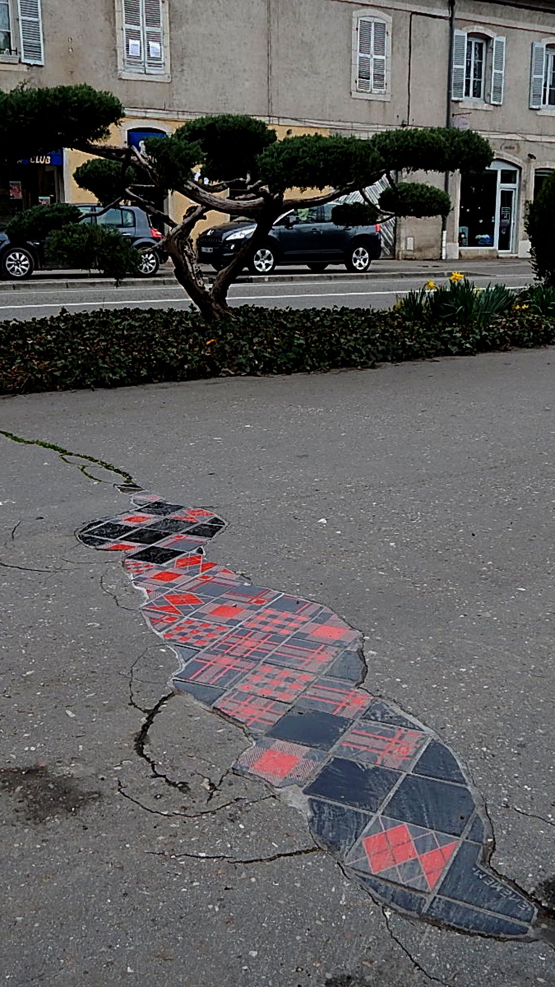 Appréciant le côté vertueux de la démarche artistique - réparer le bitume tout en recyclant du carrelage voué à rejoindre la poubelle -, Fabien a posté ses premiers clichés sur son compte Instagram. Et, devant la multiplication des commentaires lui demandant le lieu exact des œuvres, il a eu l’idée de les répertorier sur une Google Maps pour permettre aux gens de les trouver plus facilement. Car l’avantage et/ou l’inconvénient du flacking c’est qu’il se fond très (trop) bien dans le bitume et il faut parfois avoir le nez dessus pour le repérer. Et même avec une localisation, il faut parfois fureter pour finalement se laisser éblouir par l’œuvre.